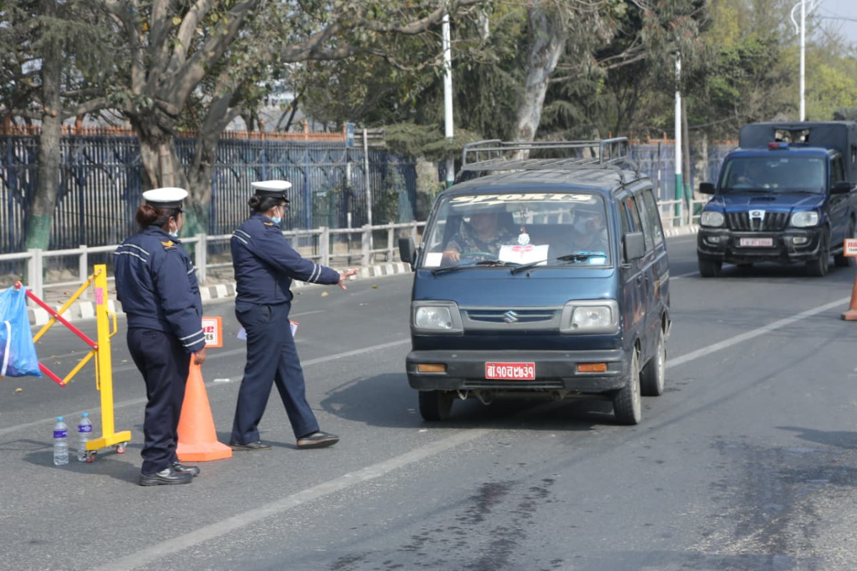 आज अत्यावश्यक र पास भएका सवारी साधनबाहेक अन्य सवारी साधन चलाउन पाइँदैन । हिँडडुल गर्न भने रोक लगाइएको छैन । यहाँको सुरक्षा व्यवस्था र ट्राफिक चेकजाँचमा कडाइ गरिएको छ ।