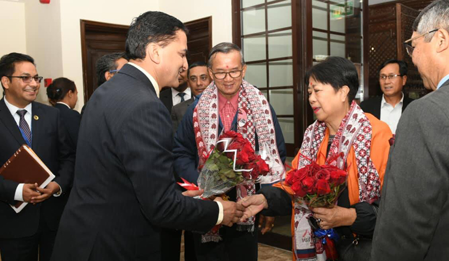 मन्त्री मउङलाई संस्कृति, पर्यटन तथा नागरिक उड्डयन मन्त्री योगेश भट्टराईले सोल्टी होटेलमा स्वागत गरेका छन् ।