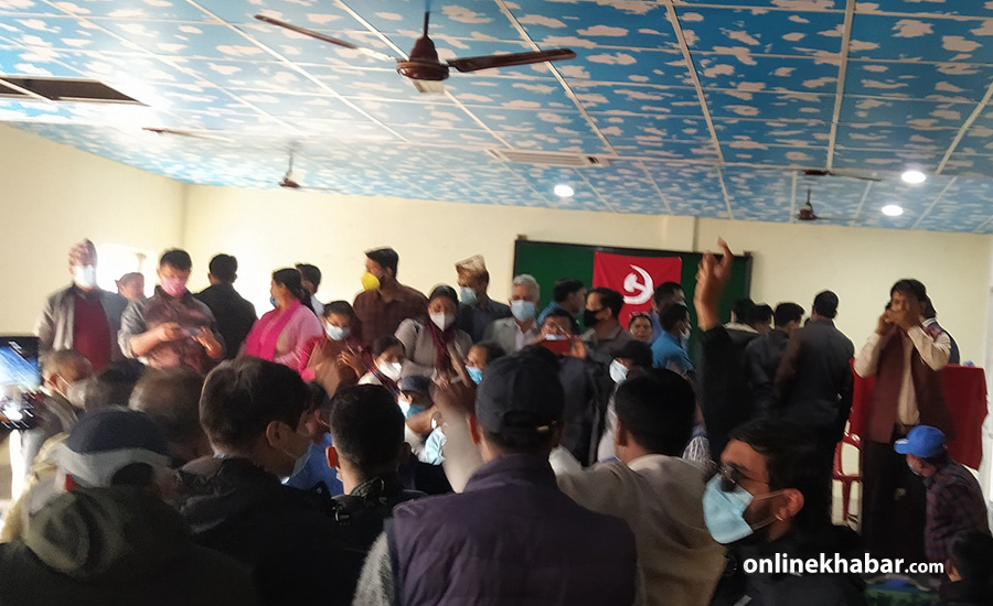 ६ मंसिर, चितवन । सत्तारुढ नेपाल कम्युनिस्ट पार्टी (नेकपा)को केन्द्रमा देखिएको विवाद जिल्लासम्म आइपुगेको छ ।