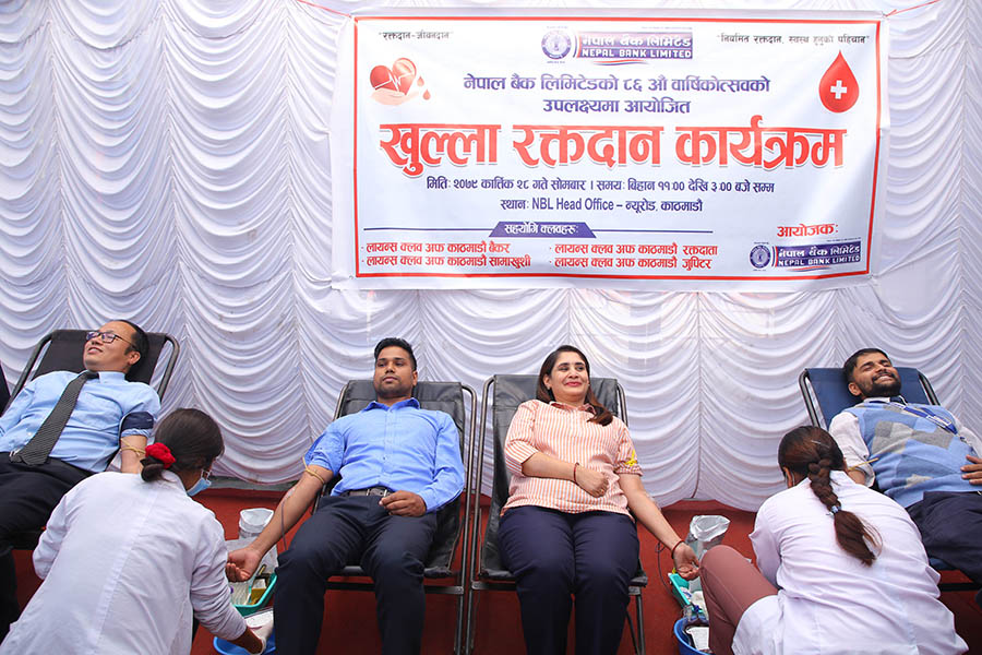 काठमाडौं । नेपाल बैंक लिमिटेले आफ्नो ८६औं वार्षिकोत्सवको अवसरमा रक्तदान कार्यक्रम आयोजना गरेको छ ।