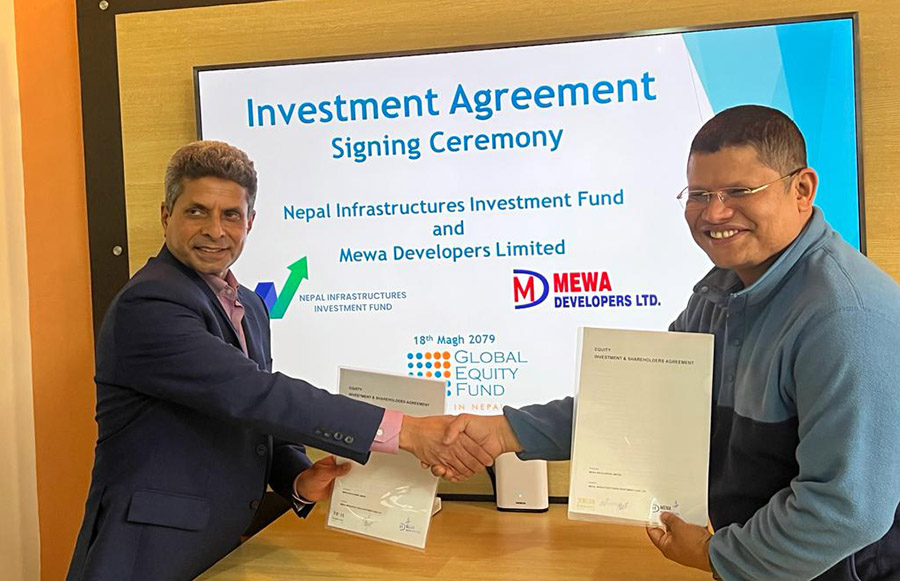 १९ माघ, काठमाडौं । ग्लोबल इक्विटी फण्ड, प्राइम लाइफ इन्स्योरेन्स र हिमालयन एभरेष्ट इन्स्योरेन्सद्वारा संयुक्त रूपमा प्रवर्द्धन गरिएको नेपाल इन्फ्रास्ट्रक्चर्स इन्भेस्टमेन्ट फण्ड लिमिटेडले मेवा डेभलपर्स लिमिटेडमा लगानी गरेको छ।