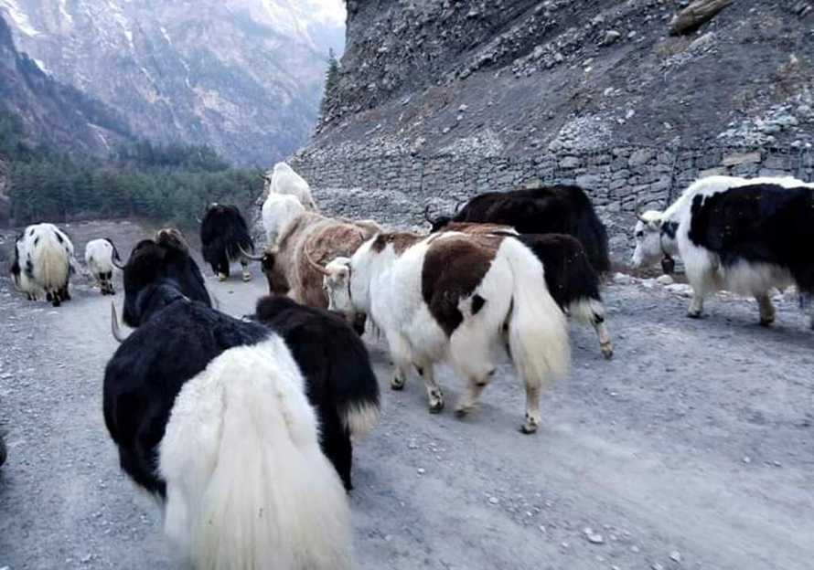 घरपझोङ गाउँपालिकाको मार्फा, स्याङ र जोमसोम गरी आठ घरधुरीले करिब पाँच सय याकचौँरी पालेका छन् । बर्खामा हिमालको फेदी र लेकाली क्षेत्रमा लगिएका याकचौँरीको गोठ चिसो याममा बेँसी झारिएको छ ।