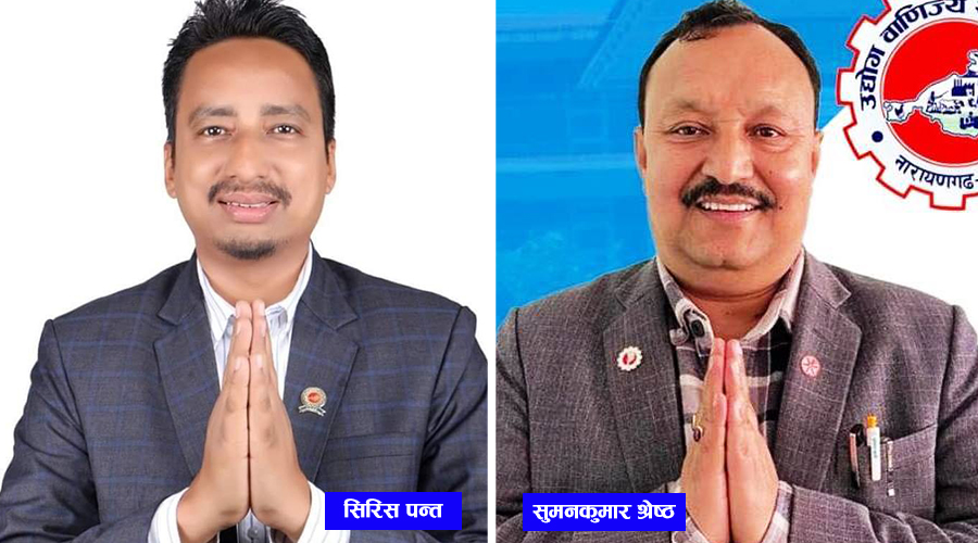 २२ पुस, चितवन । उद्योग वाणिज्य संघ चितवनको अध्यक्ष पदमा सिरिष पन्त र सुमनकुमार श्रेष्ठबीच प्रतिस्पर्धा हुने भएको छ ।