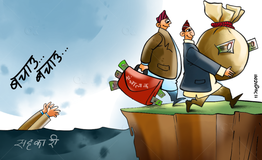 यसैको परिणतिस्वरूप विगत केही वर्ष र पछिल्ला केही सातामा सहकारीको संकटसँगै त्यसका सञ्चालकहरूको शृङ्खलाबद्ध ठगीका घटनाहरू सार्वजनिक भइरहेका छन् । खासगरी काठमाडौं, पोखरा, बुटवल, चितवन, वीरगञ्ज, नेपालगञ्ज लगायत ठूला शहरहरूमा सञ्चालित बचत तथा ऋण सहकारी संस्थाहरूका सञ्चालकहरूले गरेका बचत अपचलनका घटनाहरू निरन्तर बाहिर आइरहेका छन् । यसले हामीले साझेदारी अर्थतन्त्रको खम्बा मानेको सहकारी क्षेत्रको संस्थागत जर्जरता प्रष्ट हुन्छ ।