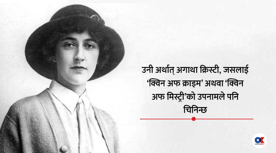 सायद उनको मस्तिष्कले निर्णय लिइसकेको थियो। उनी विस्तारै भर्याङ ओर्लिइन् र सरासर घरबाहिर निस्किइन्। ग्यारेजमा राखिएको आफ्नो कारमा चढिन् र लागिन्, एउटा गुमनाम गन्तव्यमा। उनी अर्थात् अगाथा क्रिस्टी, जसलाई ‘क्विन अफ क्राइम’ अथवा ‘क्विन अफ मिस्ट्री’को उपनामले पनि चिनिन्छ।
