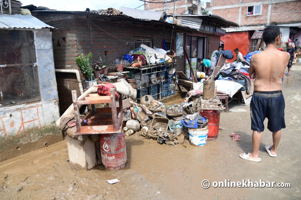 कोही भने घरभित्रबाट भिजेका सामान र लुगाफाटो झिकेर सुकाउँदै थिए । घरको हिलो पखाल्दै थिए । काठमाडौं महानगरपालिकाको एक टोली एउटा डोजरसहित त्यस क्षेत्रमा सरसफाइमा सहयोग गर्न पुगेको थियो ।