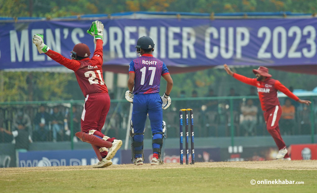 सोमपालले स्वीप खेल्न खोजेका थिए तर बल बीट भयो । कतारले एलबीडब्लूको चर्को अपील गरेको थियो । अम्पायरले दिएनन् ।