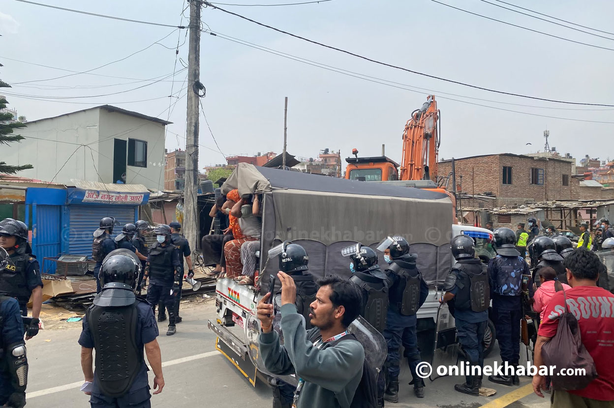 बस्तीमा प्रहरीले माइकिङ गरेपछि कतिपयले आफ्ना सामानहरू सुरक्षित स्थानमा लगिरहेका छन् । केही भने प्रतिकारको मनस्थितिमा बसिरहेका छन्।