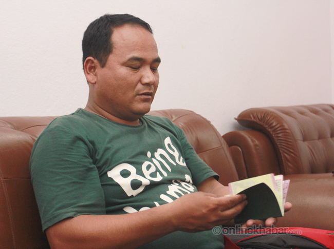 ९ असार, काठमाडौं । ‘बिइङ हुम्यान’ लेखिएको हरियो टी-शर्ट लगाएका युवा अनलाइनखबरको कार्यालय खोज्दै आइपुगे । उनको उद्देश्य रहेछ नेकपा एमालेका केन्द्रीय सदस्य तथा सभासद जीतु गौतम र उनकी पत्नी तुलसाले आफूलाई ठगेको रामकहानी अनलाइनखबरमार्फत सबैका सामु पुर्याउनु ।