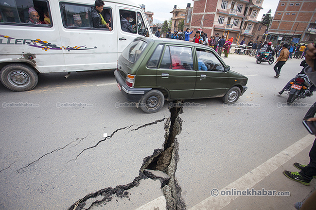 कोटेश्वर-भक्तपुर सडकखण्डमा भूकम्पपछि फाटेको धाँजा । फाइल तस्वीर