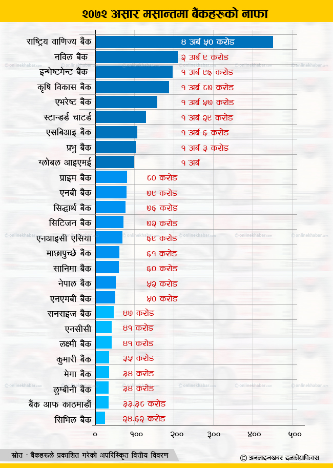 स्प्रेडले घटायो ठूला बैंकको नाफा, कुन बैंकले कति कमाए ?