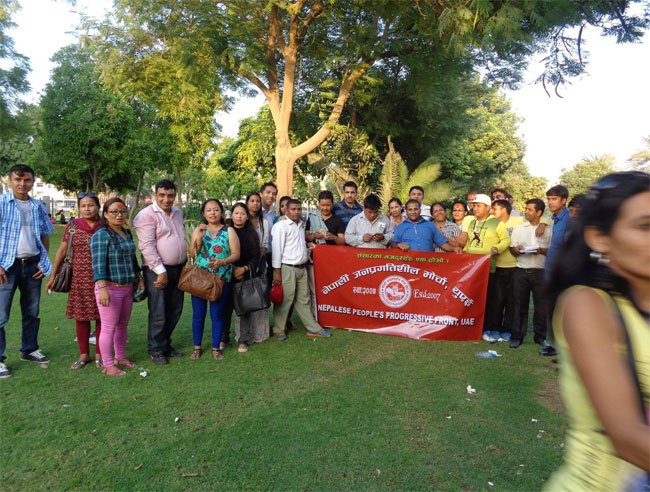 यूएईमाभर्खरै स्थापितभएपनि जनमुखी कार्यक्रमहरु गरिरहेको नेपाली समूदाय यूएईले पनि जाबिलपार्कमा सामूहिक टीका तथाजमरा ग्रहण कार्यक्रम आयोजना गरेको संयोजक रघुनाथ ढुगेलले जानकारी दिएका छन् । कार्यक्रममा सांस्कृतिक कार्यक्रमका साथमा मिठामिठा नेपाली परिकारका साथ माजलपानकार्यक्रम आयोजना गरिएको थियो ।