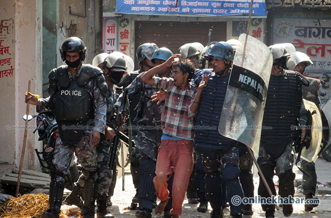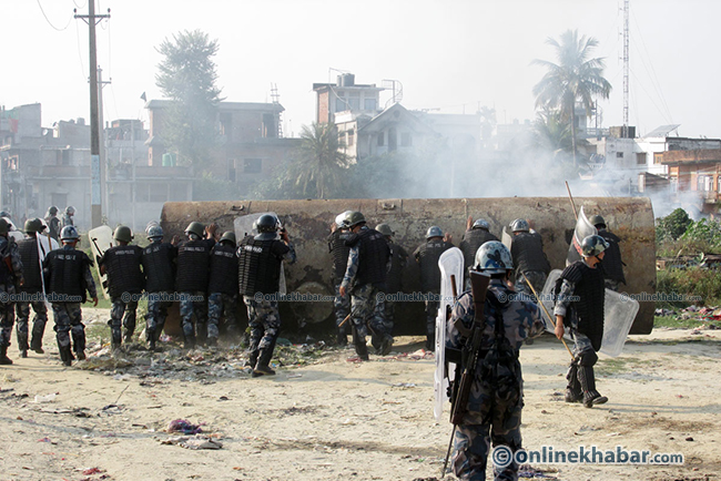 १७ कात्तिक, वीरगञ्ज । कर्फ्यू उल्लंघन गर्दै प्रदर्शनमा उत्रिएका आन्दोलनकारीले वीरगञ्जका विभिन्न स्थानमा सुरक्षाकर्मीमाथि पेट्रोल बम प्रहार गरेका छन् ।