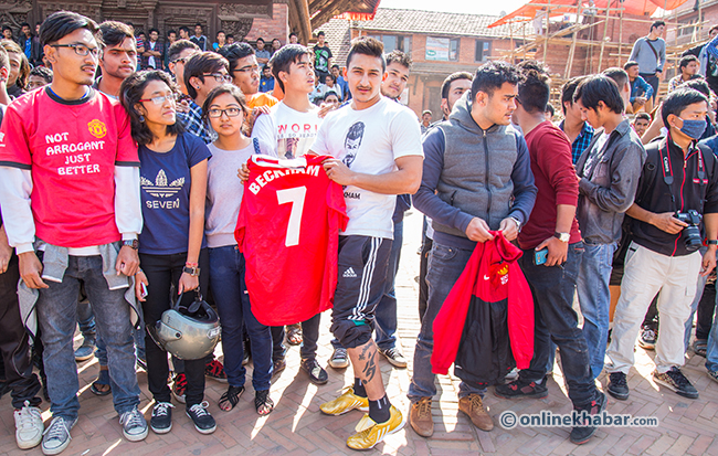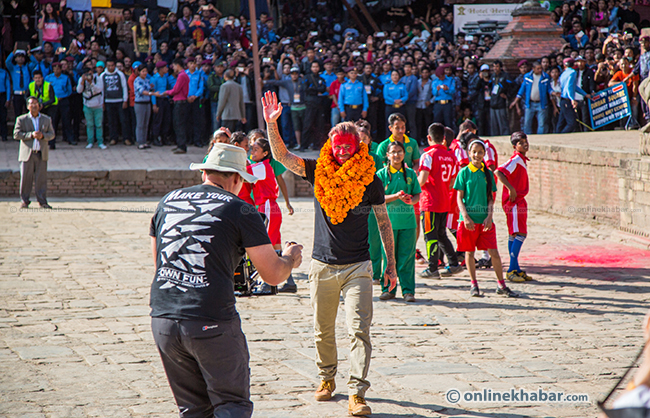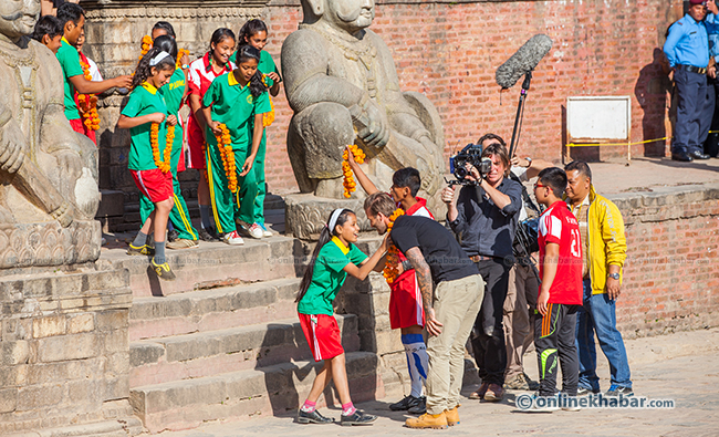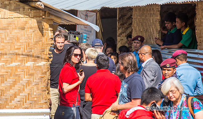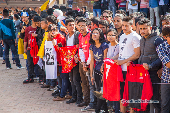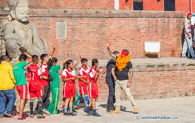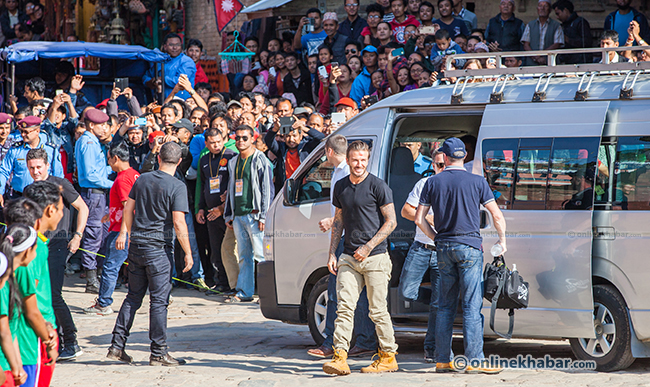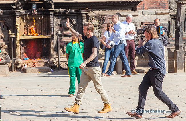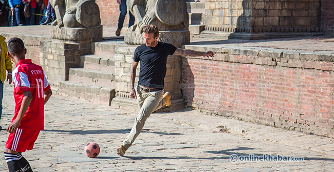 वरिपरि विद्यार्थीदेखि युवाहरु हुटिङ गरिरहेका थिए भने मन्दिर प्राङ्गणको एक भागमा इंग्ल्याण्डका चर्चित फुटबलर डेभिड बेकहृयाम बालबालिकासँग फुटबल खेलिरहेका थिए ।
