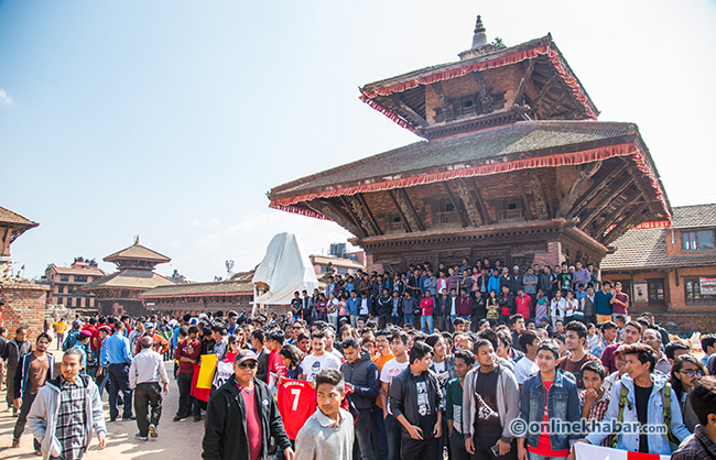 २० कात्तिक, काठमाडौं । विनाशकारी भूकम्पले थिलथिलो भएको भक्तपुरको पाँच तले मन्दिर परिसरमा शुक्रबार निकै रमाइलो माहोल थियो ।