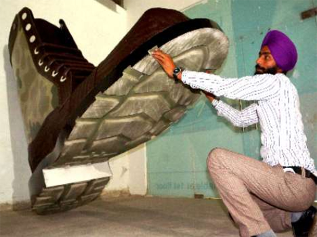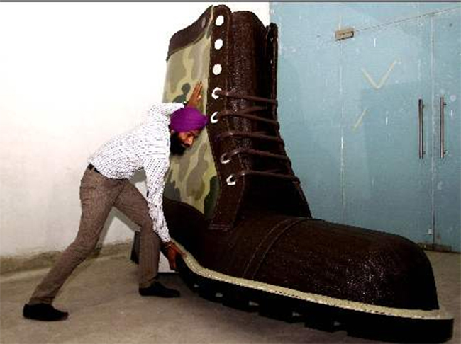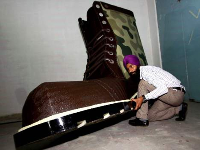 भारतको पन्जाबस्थित अमृतसरका कागज कलाकार गुरपि्रत सिंहले कागज तथा रबरबाट भिमकाय जुत्ता बनाउने गरेका छन् ।