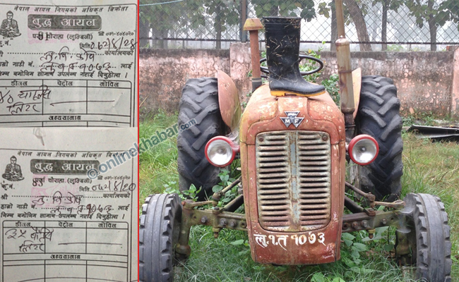 कोषबाट सोही वर्षौंदेखि थन्किएको ट्याक्टर लु १ त १०७३ नम्बरको प्लेटको नामबाट गत साउन १२ गते ४० लिटर डिजेल बुद्ध आयलबाट ‘निजी प्रयोजन’ का लागि लिएको देखिएको छ । त्यस्तै साउन १७ गते ३५ लिटर, २० गते ३५ लिटर, २४ गते ४० लिटर र २७ गते ४० लिटर डिजेल लिएको पाइएको छ ।