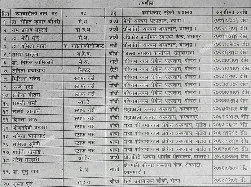 विना जानकारी ६० दिनभन्दा लामो समय विदामा बसेपछि उनीहरुलाई भविष्यमा सरकारी सेवाका लागि समेत अयोग्य हुनेगरी कारबाही गरेको उपसचिव बाबुराम खनालले जानकारी दिए ।