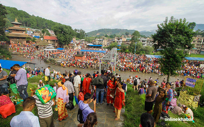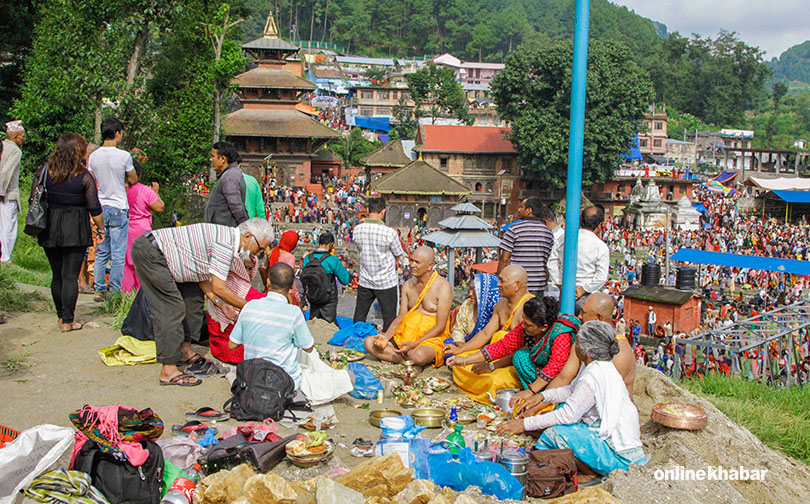 १६ भदौ, काठमाडौं । राजधानीको पूर्वोत्तर भागमा पर्ने गोकर्णेश्वर मन्दिरमा विहीबार भीड लागेको छ । कुसे औंसी एवं बुबाको मुख हेर्ने दिन गोकर्णेश्वरमा वर्षैपिच्छे यस्तै भीड लाग्ने गर्छ ।