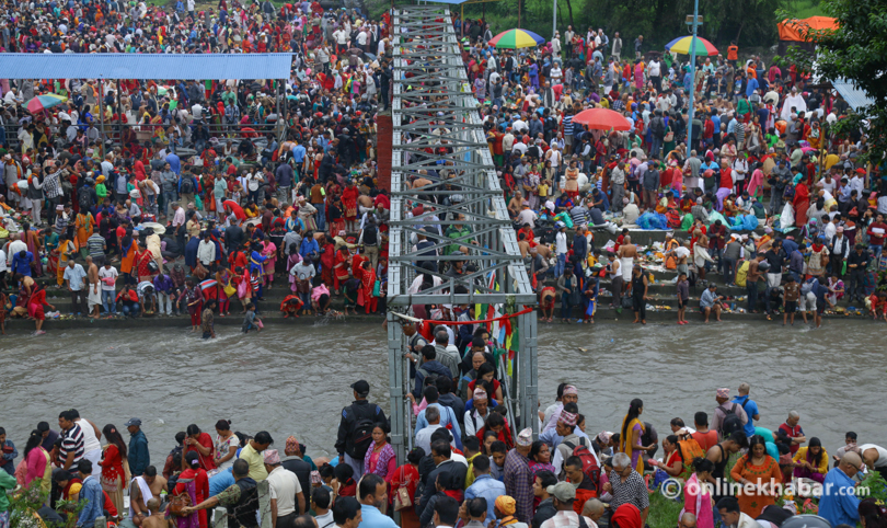 यस वर्षको भाद्र कृष्ण औँसी सोमबार परेकाले बिहान उठेर नबोलीकन स्नान गरेमा एक हजार गाई दान गरेबराबरको फल पाइने धर्म ग्रन्थ हेमाद्रिमा वर्णन गरिएको नेपाल संस्कृत विश्वविद्यालय वाल्मीकि विद्यापीठ धर्मशास्त्र विभागका विभागाध्यक्ष प्राडा देवमणि भट्टराईले जानकारी दिए ।