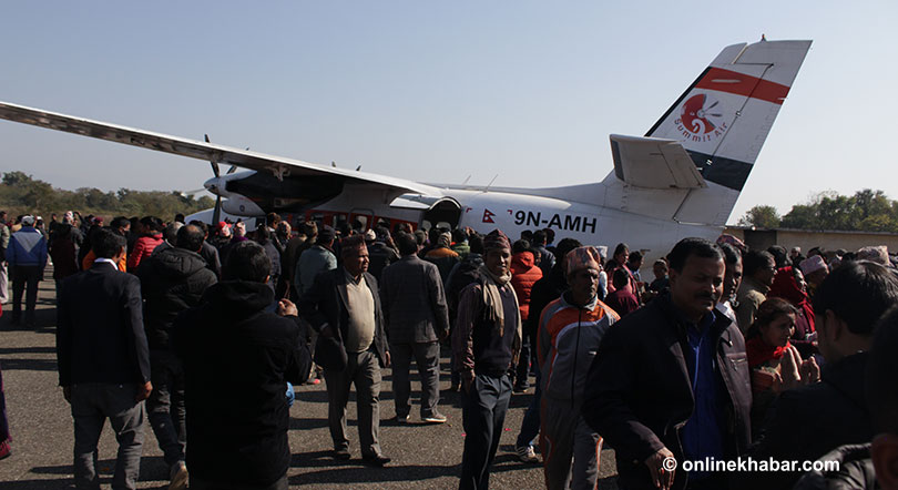 दाङमा चल्न थाल्यो जहाज, एयरपोर्टमा पञ्चेबाजाले स्वागत