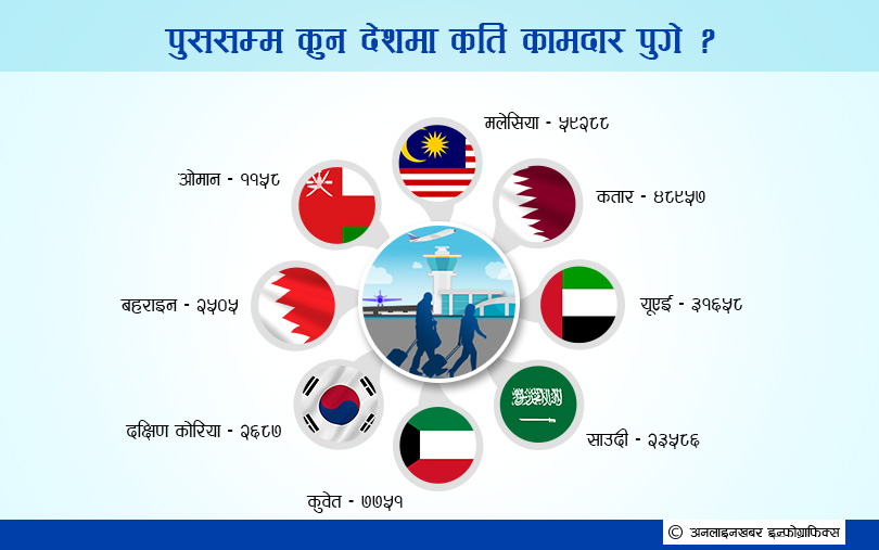 पहिलो ६ महिनाको तथ्यांकअनुसार सबैभन्दा धेरै नेपाली कामदार मलेसिया पुगेका छन् । पुससम्म ५९ हजार कामदारले वैदेशिक रोजगार विभागबाट मलेसिया जाने श्रम स्वीकृति लिएका छन् ।