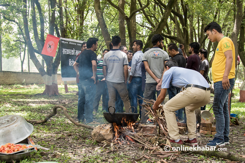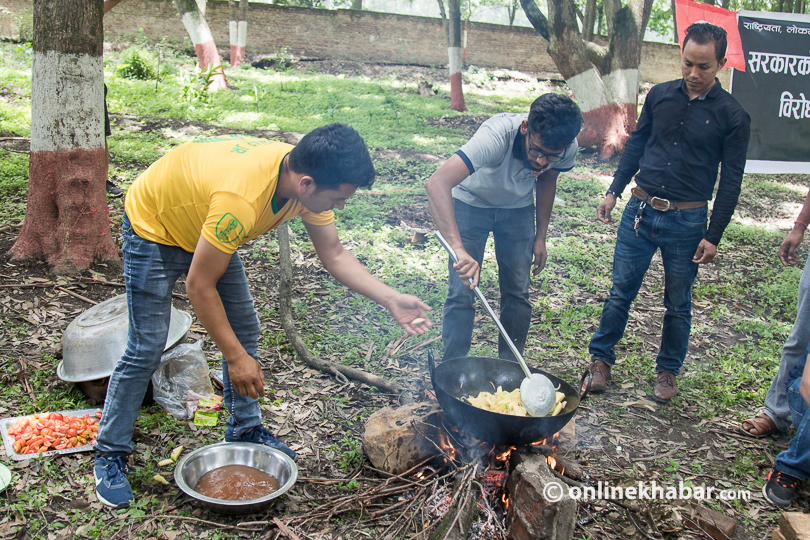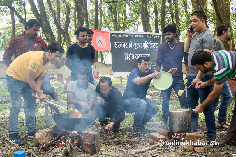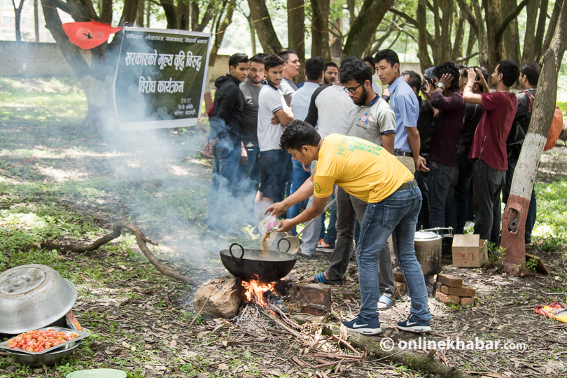 विद्यार्थीहरुले त्रिभुवन विश्व विद्यालय केन्द्रीय क्याम्पसको गेटमै खाना पकाएका हुन् । सरकारले केही समयअघि लगातार इन्धनको मूल्य बृद्धि भएको थियो ।