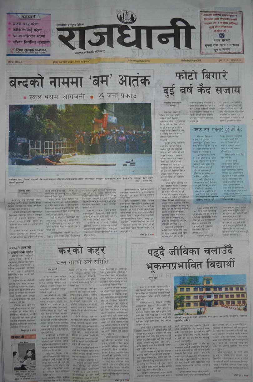 राजधानीले फोटो बिगारे २ वर्ष कैद हुने समाचार छापेको छ भने गोरखापत्रले नेपाल टेलिकमकी प्रबन्ध निर्देशक कामिनी राजभण्डारी पदमुक्त भएकोलाई मुख्य समाचारका रुपमा प्रस्तुत गरेको छ ।