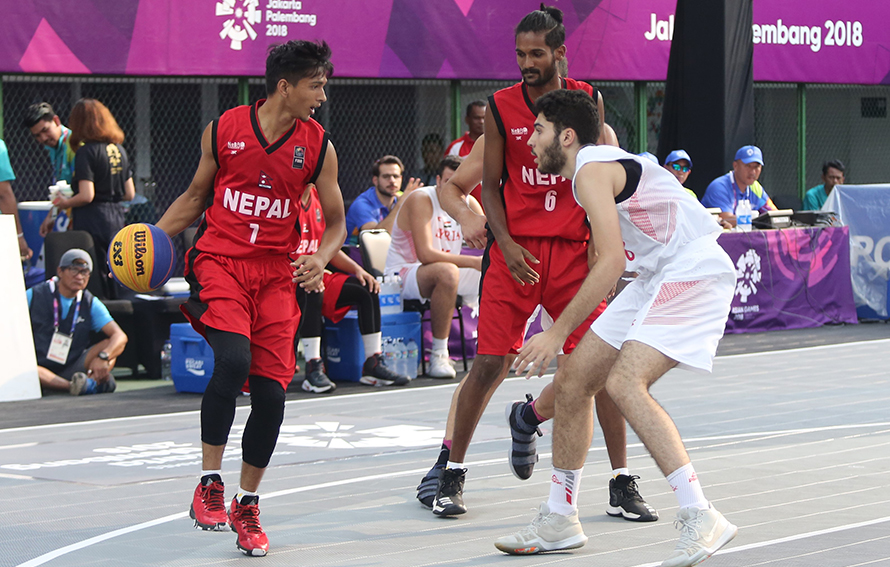 पुरुष थ्री बाइ थ्री बास्केटबलको समूह चरणको खेलमा नेपाल चौथो भएको छ । ६ राष्ट्र सहभागी समूह ‘सी’ को खेलमा शुक्रबार नेपालले १ मा वाक ओभर, १ मा जित र १ मा हारको सामना गर्यो ।