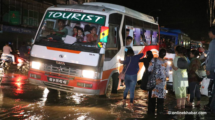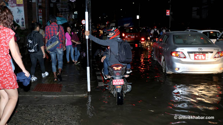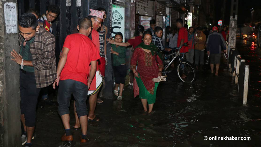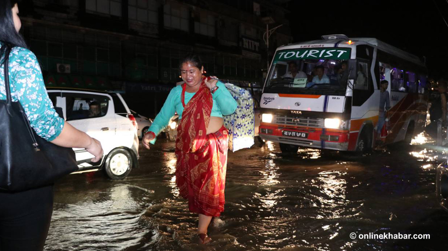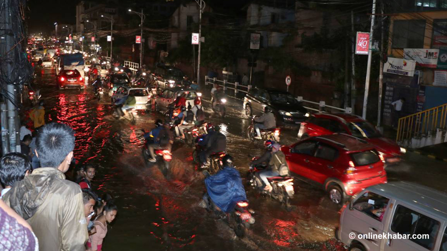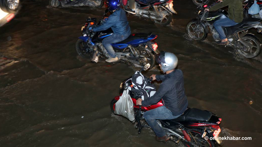 तर, जमल भने जलमग्न भएको छ । सडकमा मात्र होइन, सडक पेटी नै डुब्ने गरी पानी जमेपछि पैदलयात्रुहरुको विजोग भएको छ ।
