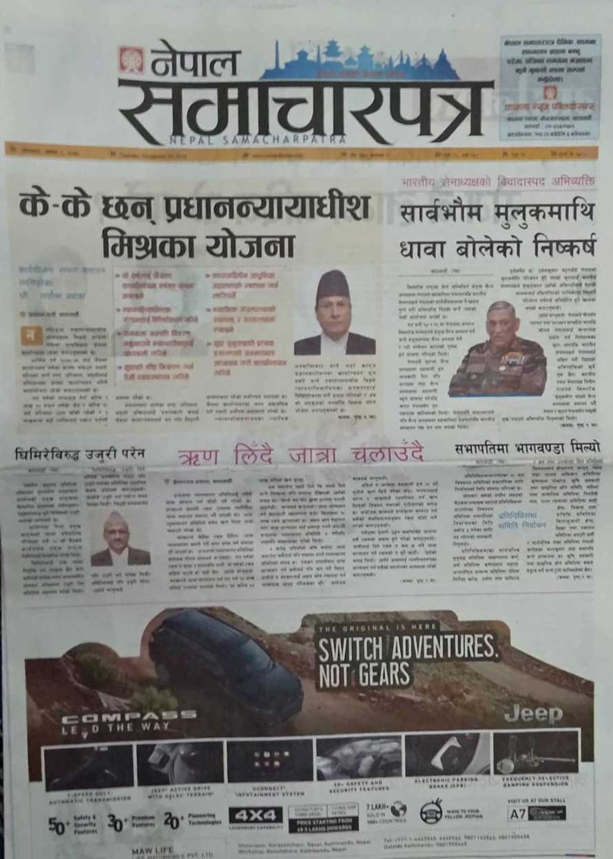 हेर्नुहोस् आजका पत्रपत्रिकाका फ्रन्टपेज
