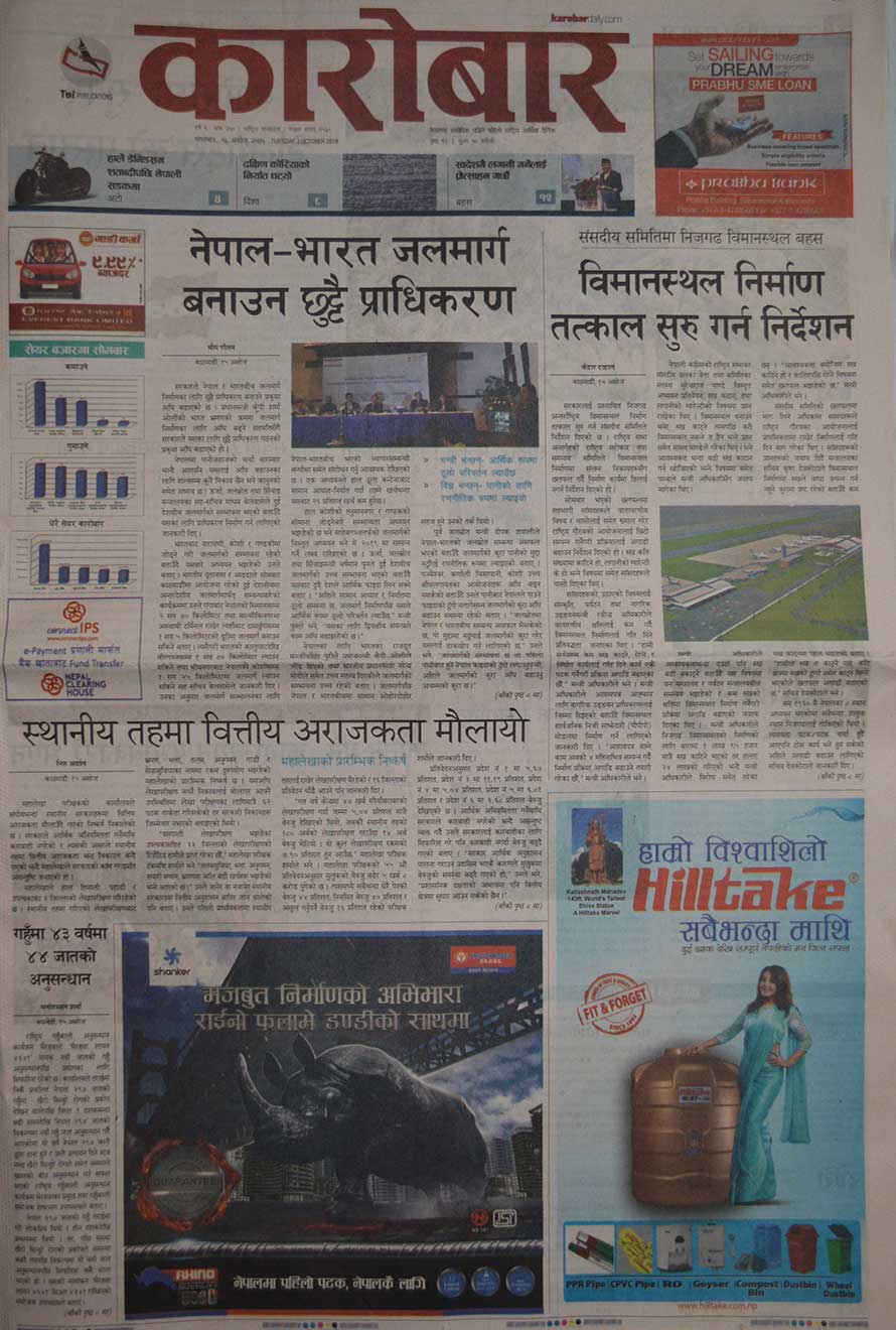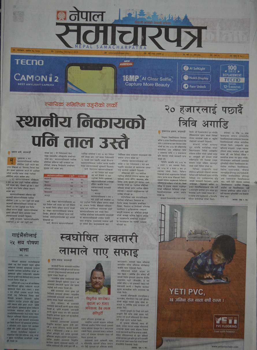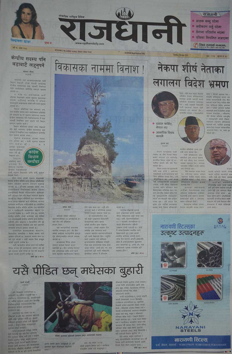 पहिलो पृष्ठमै पहाडमा २० वर्ष पुराना गाडी चलाउने तयारी गरिएको, नागढुंगा–सिस्नेखोला सुरुङमार्ग निर्माण पुसदेखि हुने भएको, बालुटारको बगैंचा रंगरोगनमा पाँच करोड खर्च भएको, खानेपानी संस्थानको पाइप खरिदमा २५ करोड घोटाला भएको लगायत समाचार प्रकाशित छन् ।