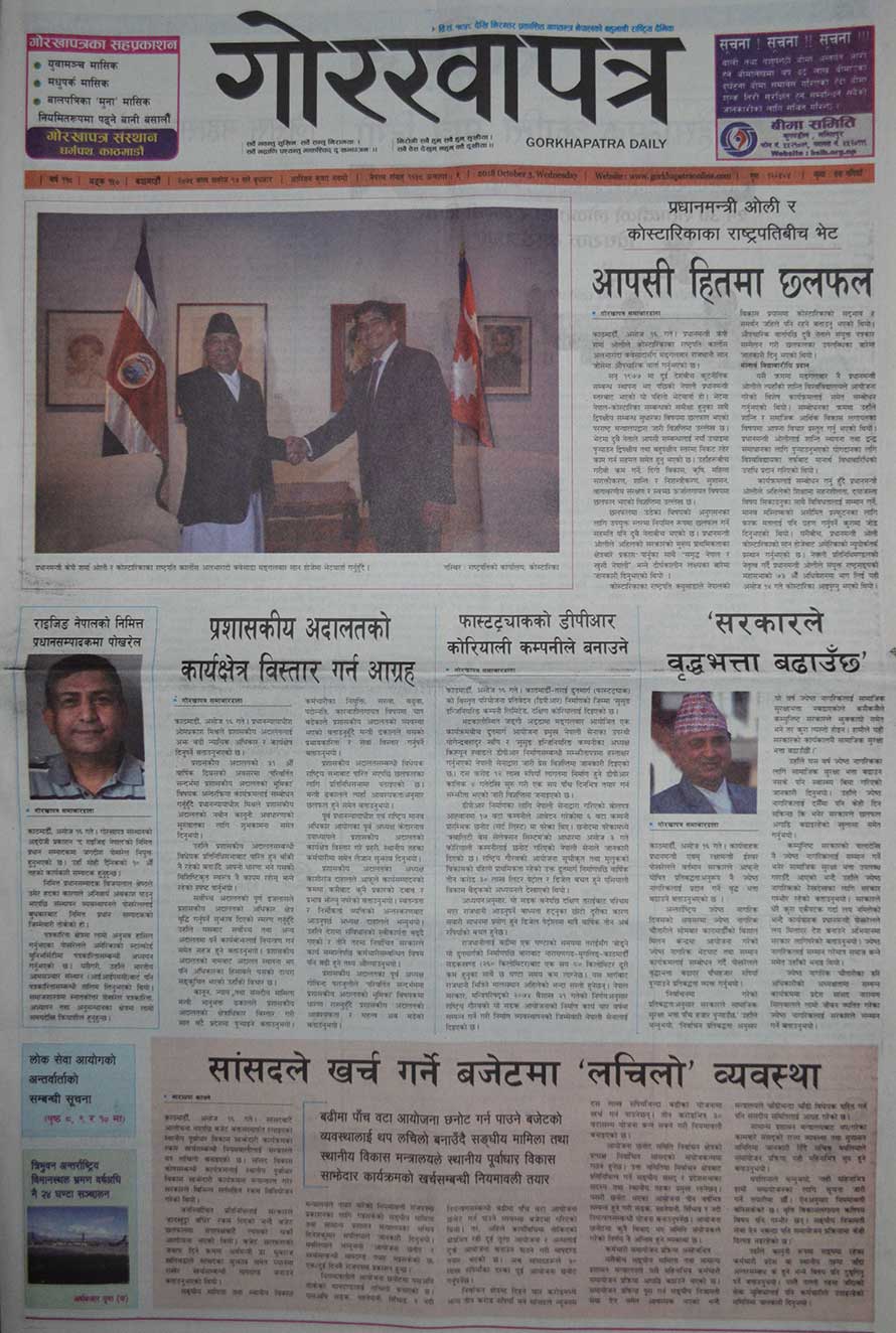 राजधानीले एकै दिन २९ सम्बन्ध विच्छेद भएको लेखेको छ भने गोरखापत्रले सांसदले खर्च गर्ने बजेटमा लचिलो व्यवस्था गरिएकोलाई एंकर बनाएको छ ।