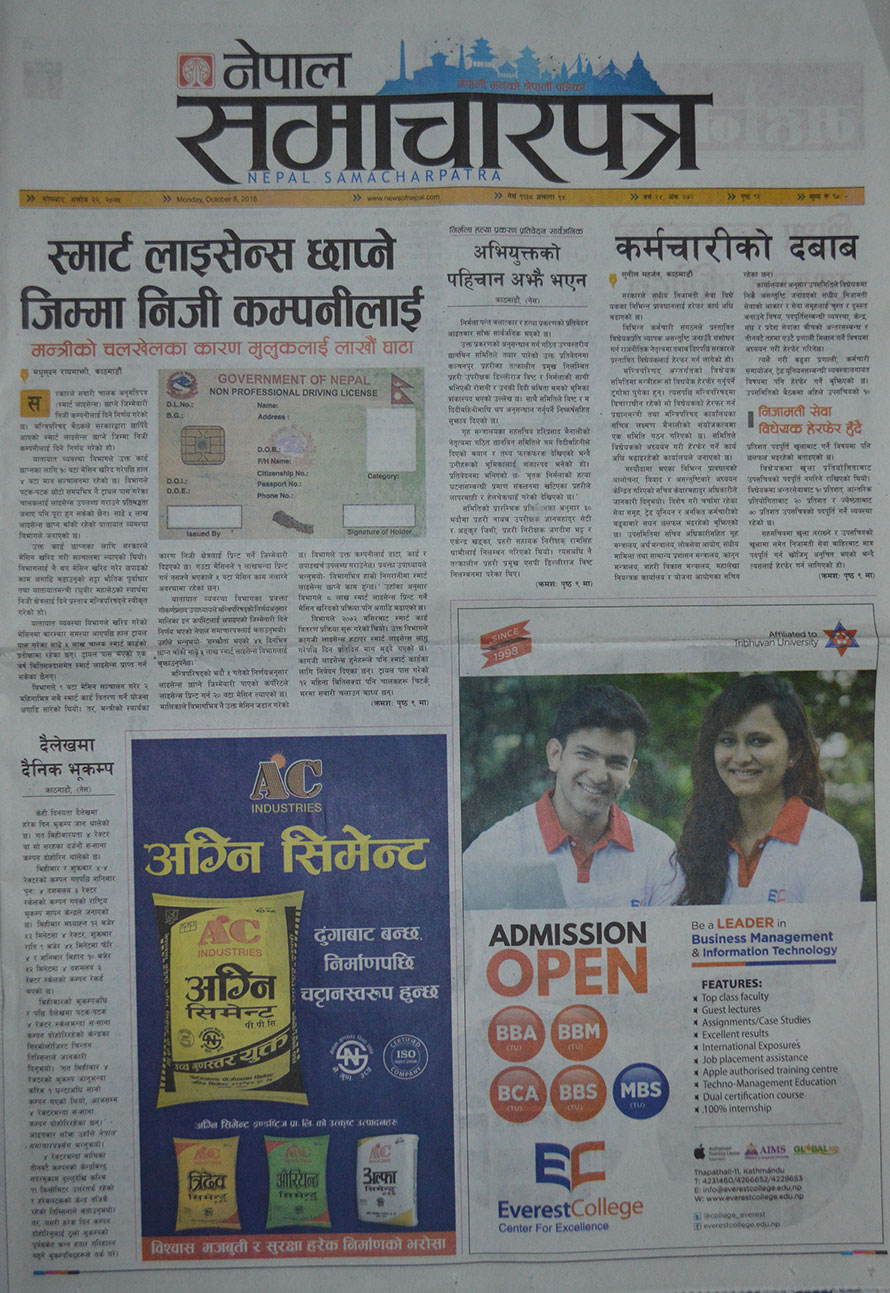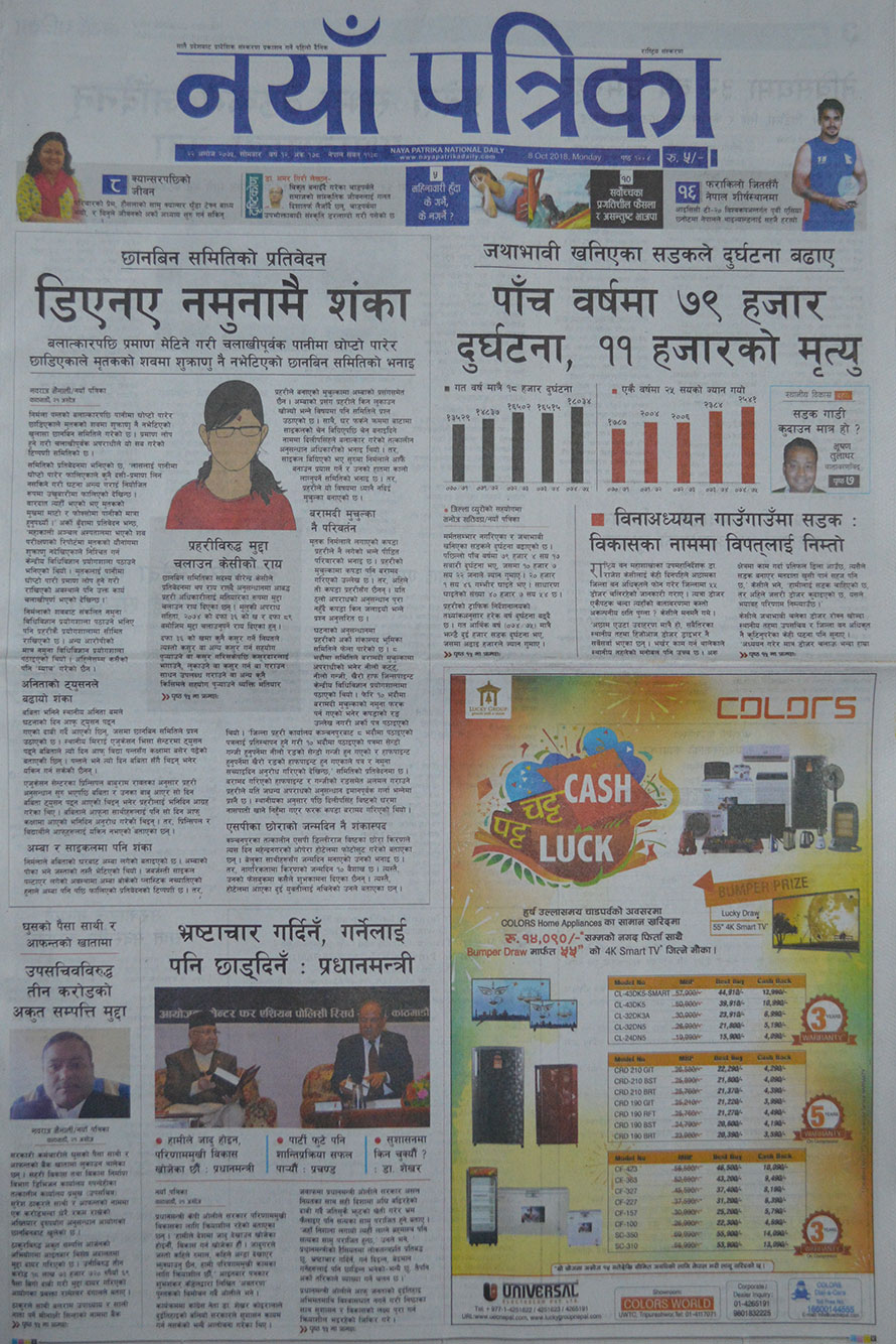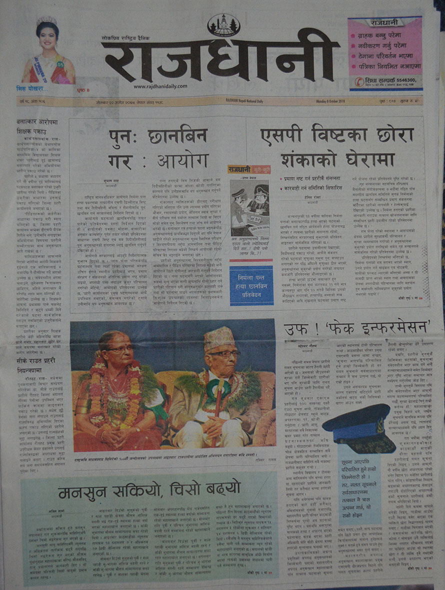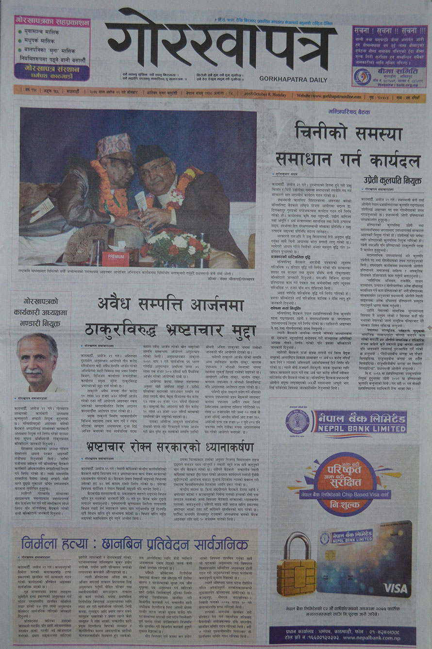 यसका अतिरिक्त पुँजीगत खर्च बढाउन संसदले सरकारलाई निर्देशन दिएको, अवैध सम्पत्ति आर्जन गर्ने इन्जिनियरविरुद्ध भ्रष्टाचार मुद्दा दायर भएको, स्मार्ट लाइसेन्स छाप्ने जिम्मा निजी कम्पनीलाई दिइएको, सडक दुर्घटना बढेकोलगायत समाचारलाई पनि पत्रपत्रिकाहरुले पहिलो पृष्ठमा समेटेका छन् ।