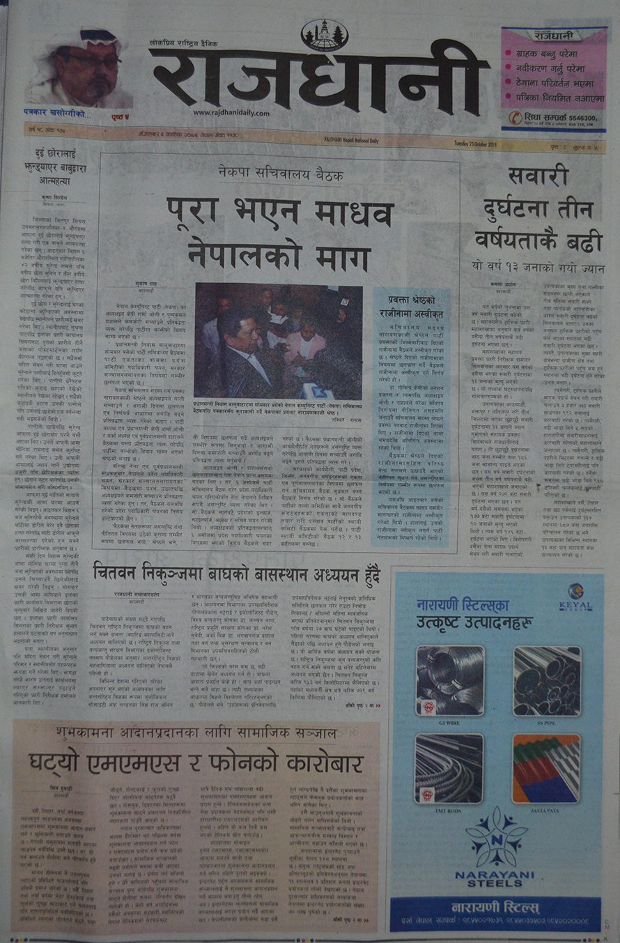 राजधानीमा सवारी दुर्घटना ३ वर्षयताकै बढी भएको खबर छ भने गोरखापत्रले काठमाडौं उपत्यकालाई मेट्रोसिटी बनाउन जनप्रतिनिधिले दिएको सुझावलाई एंकर बनाएको छ ।