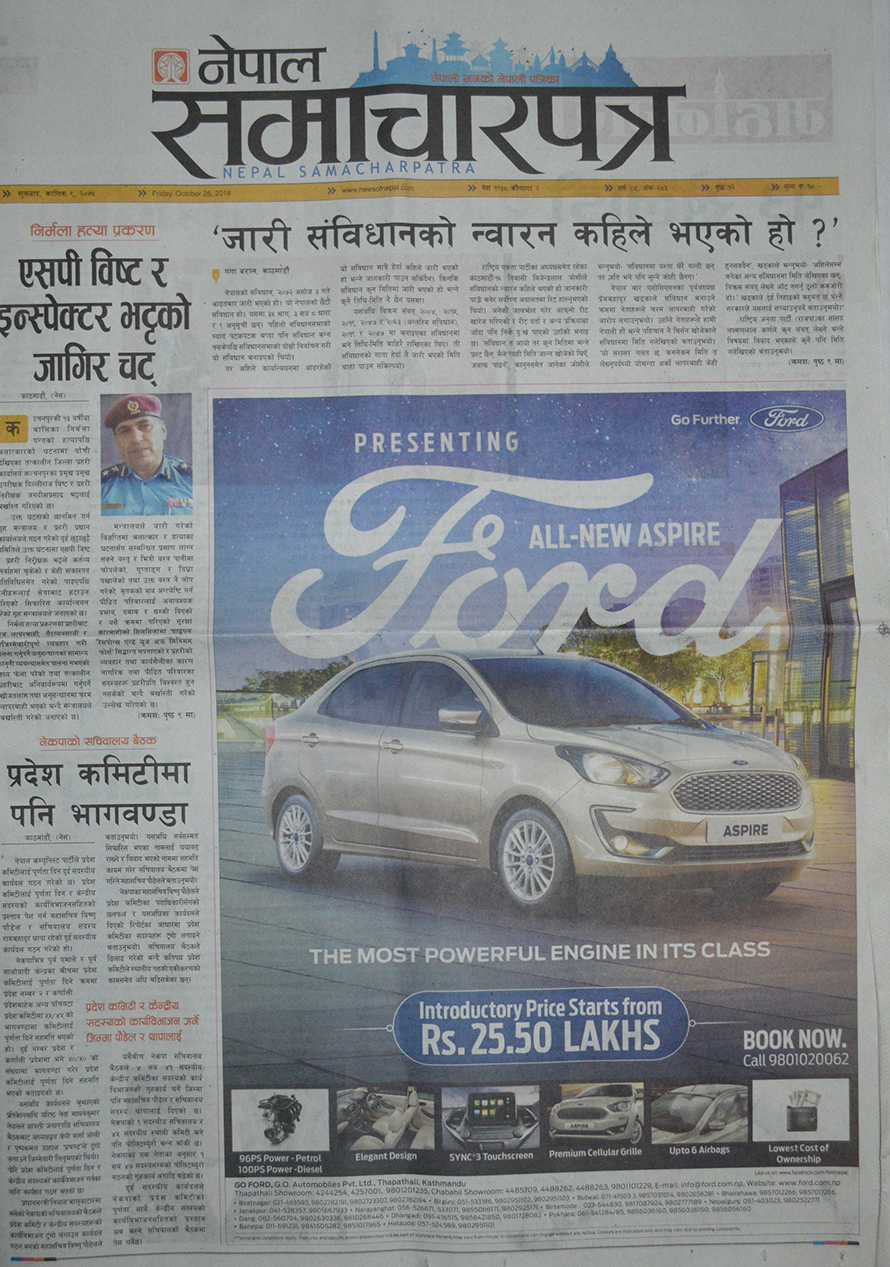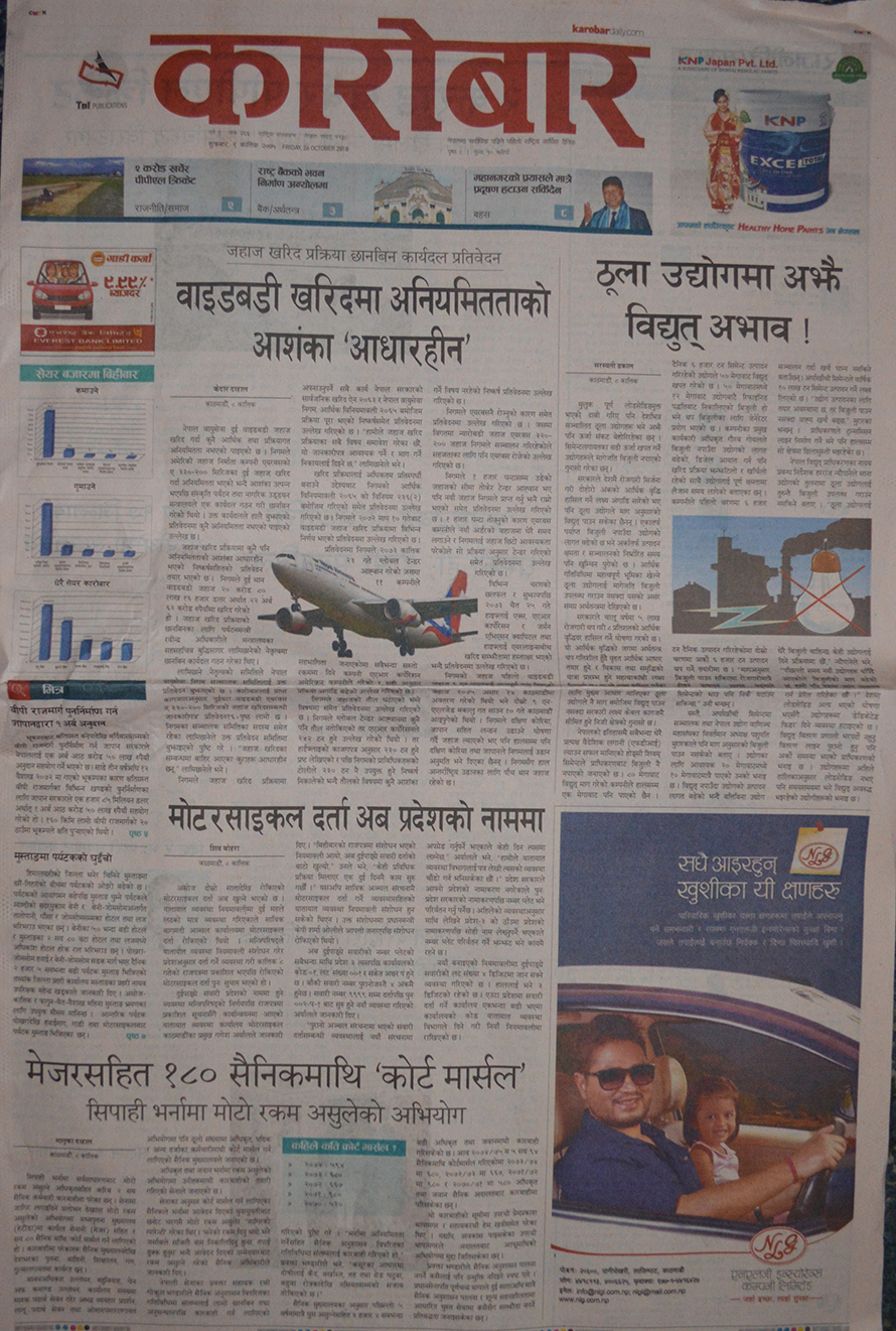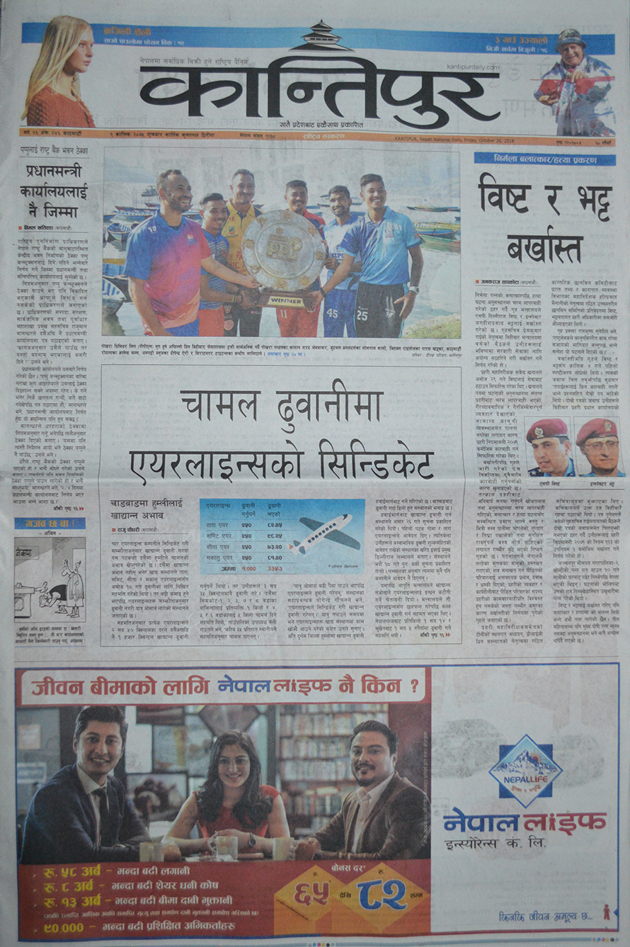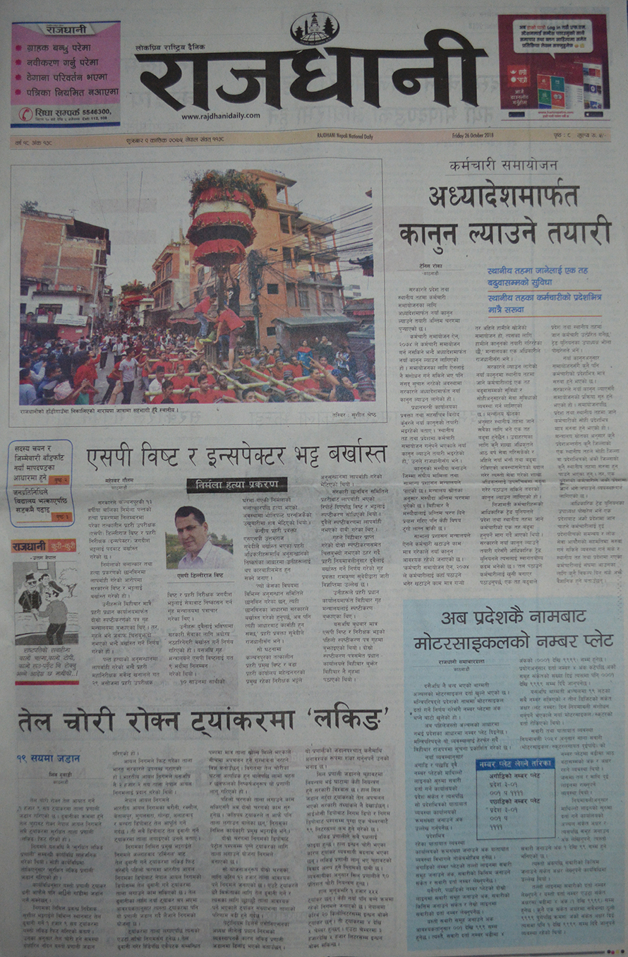 पत्रपत्रिकाको पहिलो पृष्ठमै कर्मचारी दबाबमा समायोजन अध्यादेश ल्याउन लागिएको, चामल ढुवानीमा चार एयरलाइन्स कम्पनीले सिन्डिकेट गरेको, अब प्रदेशकै नामबाट मोटरसाइकलको नम्बर प्लेट हुने भएकोलगायतका समाचार छन् ।