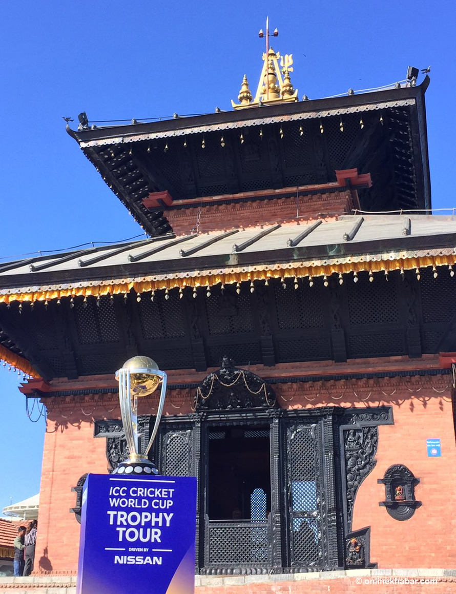 एक सय दिने विश्व भ्रमणमा रहेको विश्वकप ट्रफी दुबईबाट शुरु भई ओमान, अमेरिका, वेष्टइण्डिज, श्रीलङ्का, पाकिस्तान र बङ्गलादेश हुँदै नेपाल ल्याइएको थियाे ।