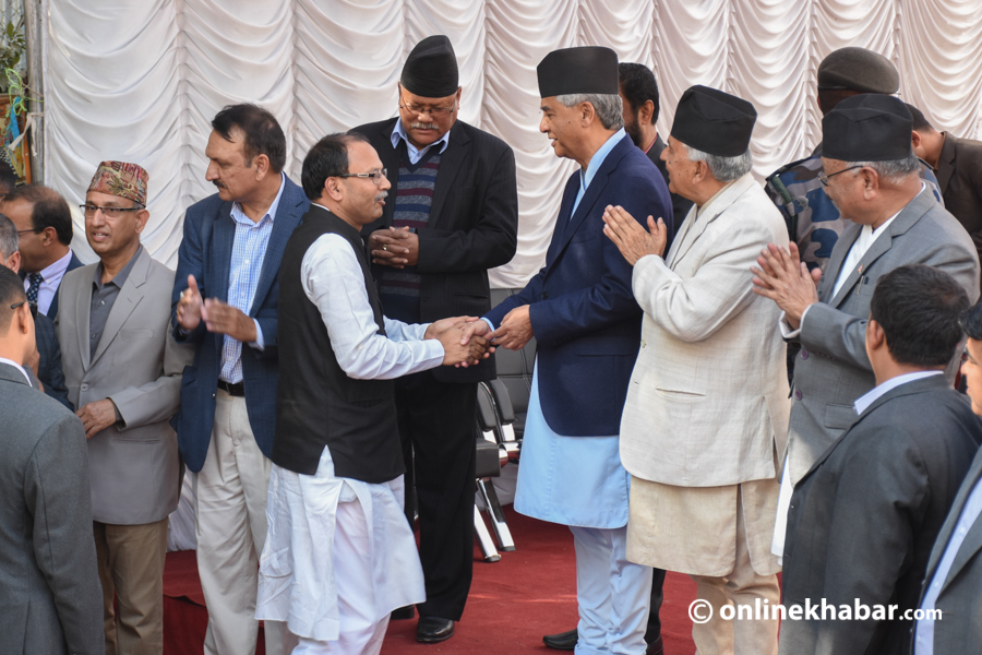 पार्टी कार्यालय सानेपामा गरिएको चियापानमा राष्ट्रियसभाका अध्यक्ष गणेश तिमल्सिना, नेपाल कम्युनिस्ट पार्टीका अध्यक्ष पुष्पकमल दाहाल प्रचण्ड, नेताहरु झलनाथ खनाल, वामदेव गौतम, नारायणकाजी श्रेष्ठ, राष्ट्रिय जनता पार्टीका अध्यक्ष मण्डलका सदस्य महन्थ ठाकुर, शरदसिंह भण्डारी, अनिल झा लगायतका नेताहरु पुगेका थिए ।