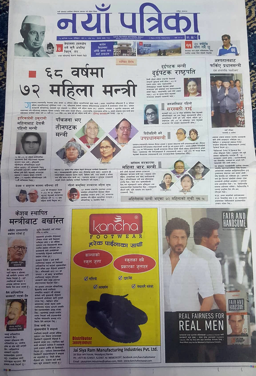 नयाँ पत्रिका दैनिकले ६८ वर्षको अवधिमा को-को महिला मन्त्री बने भनेर समाचार छापेको छ । समाचारमा लेखिएअनुसार नेपालमा ६८ वर्षको अवधिमा ७२ जना महिला मन्त्री बनेका छन् ।