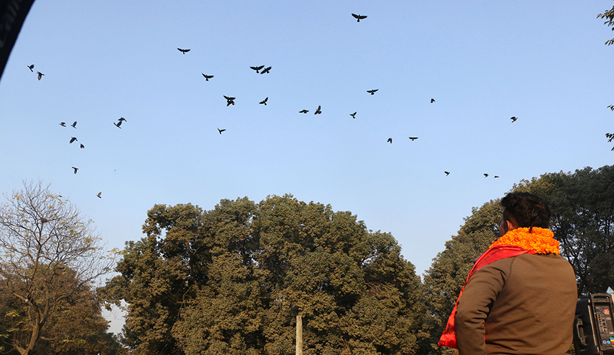 ‘मैले संविधान नबन्दा काग बोलाएर नयाँ बानेश्वरस्थित संसद् भवन र अन्तर्राष्ट्रिय विमानस्थल घेराउ गरेको छु, भारतले नेपालमा नाकाबन्दी गर्दा मैले भारतीय राजदूतावासको ढोका अगाडि काग बोलाएर विरोध गरेको छु’, दुलालले भने ।