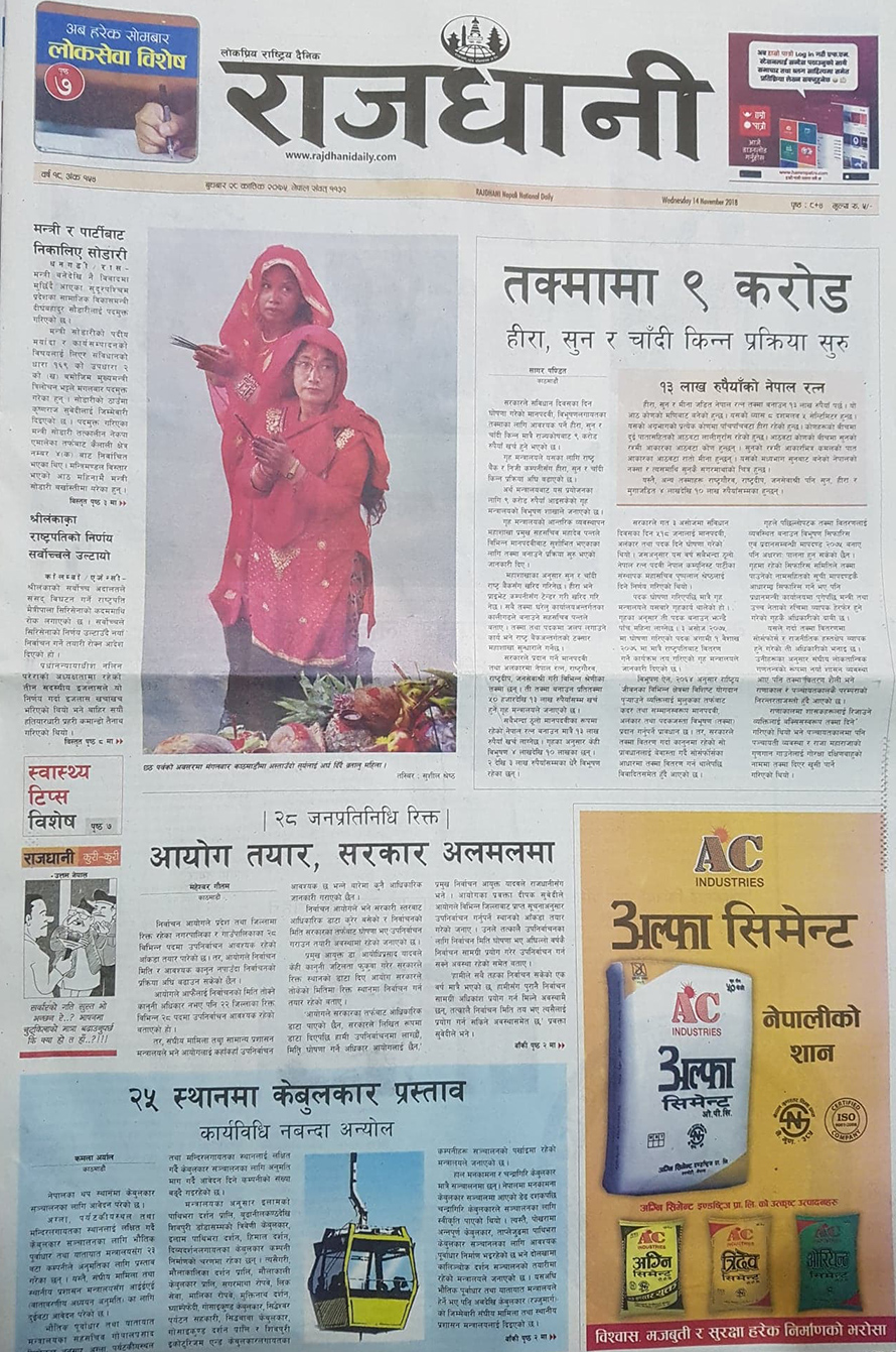 त्यसैगरी, नेकपा नेता वामदेव गौतमले राष्ट्रिय विकास प्राधिकरण गठन गरेर नेतृत्व दिन गरेको प्रस्ताव प्रधानमन्त्रीले अस्वीकार गरेको, पूर्वराष्ट्रसेवकले दोहोरो सुविधा लिएको, मुख्यमन्त्रीकै निवास शंकास्पद रहेकोलगायत खबर पनि आजका पत्रपत्रिकाको हेडलाइन बनेका छन् ।