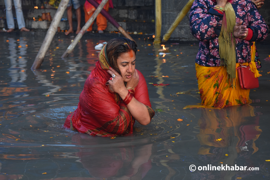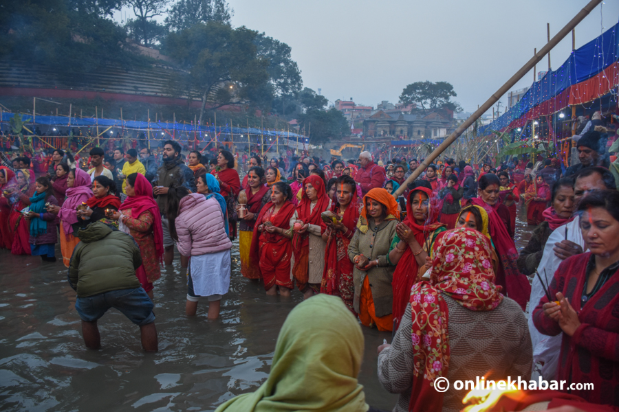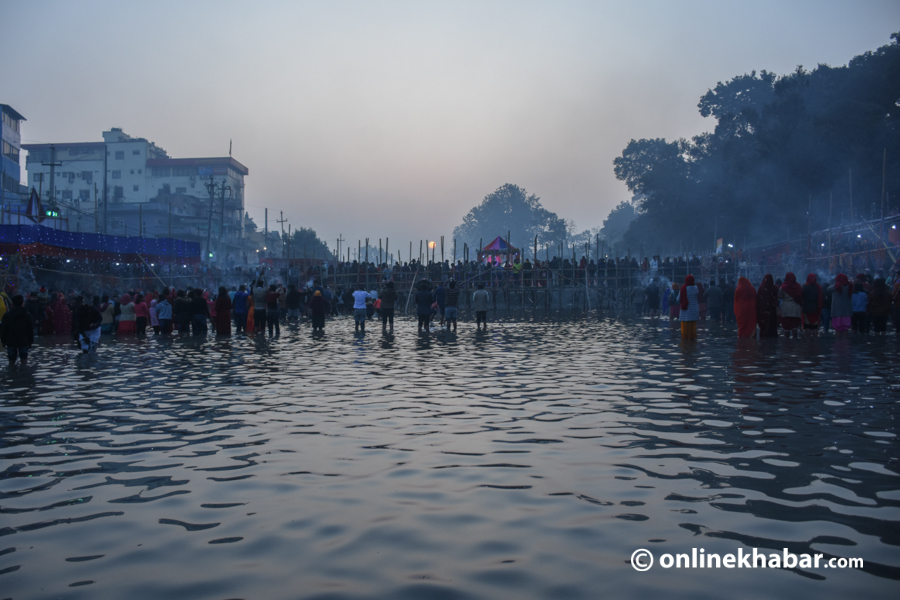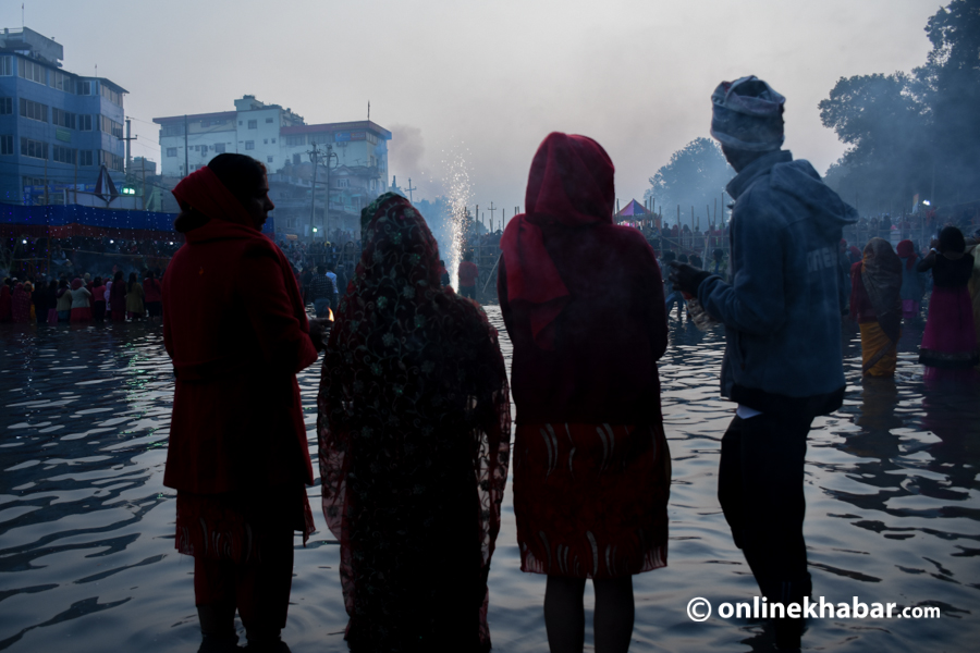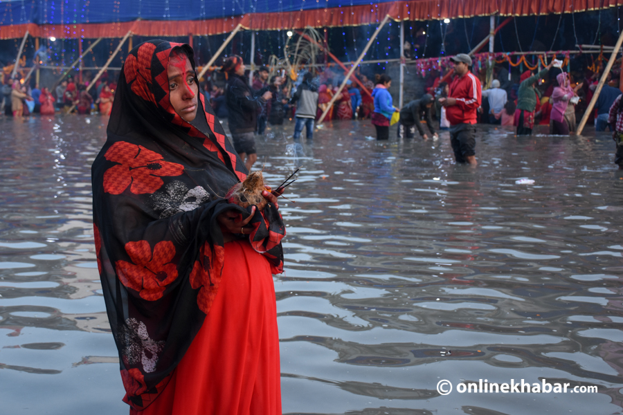 उदाउँदो सूर्यलाई अर्घ दिएर छठको बिदाइ (फोटो फिचर)