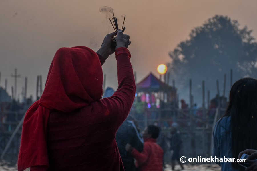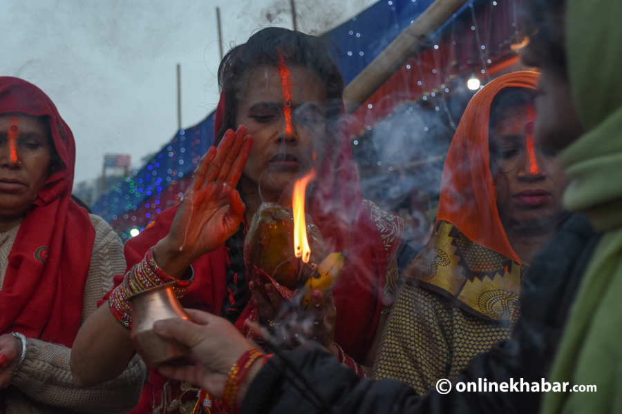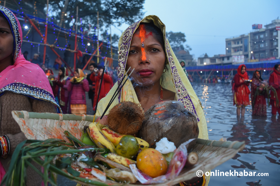 २८ कात्तिक, काठमाडौं । ३६ घण्टादेखि निराहार र निर्जल व्रत बसेकाहरुले आज छठ पर्व समापन गरेका छन् । आज चौथो दिन उदाउँदो सूर्यलाई अर्घ दिएर छठ पर्व समापन गरिएको हो ।