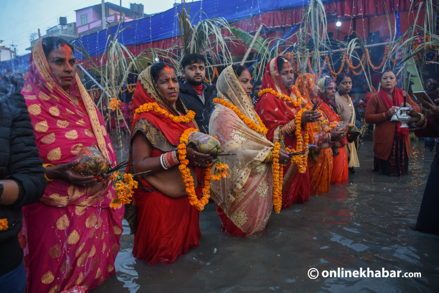 काठमाडौं उपत्यकासहित देशभरका नदी, खोला, पोखरी, तलाउ, नहरमा श्रद्धालुहरुको घुइँचो छ । छठका व्रतालुहरु छठ घाटमा भजनकिर्तन गरेर बसेका थिए । विशेषगरी तराई मधेसका जिल्लाका सार्वजनिक स्थलहरु भक्तिमय संगीतले गुन्जिएका छन् ।