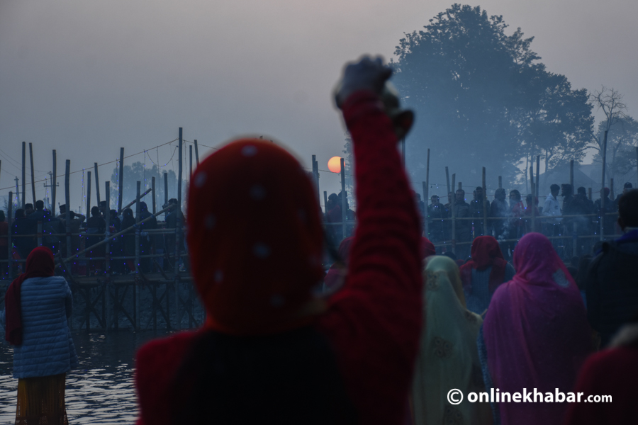 नदी, तलाउ, पोखरी, खोला र सार्वजनिक स्थानबाट व्रतालुहरुले उदाउँदो सूर्यलाई अर्घ दिएका छन् । उनीहरुले हिजो अस्ताउँदो सूर्यलाई अर्घ दिएका थिए ।