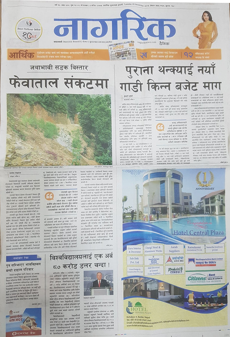 नागरिकले सडक विस्तारले फेवातालमा पारेको असरसँगै सरकारी निकायमा देखिएको गाडी खरिद विकृतिबारे एक सामग्री छापेको छ ।