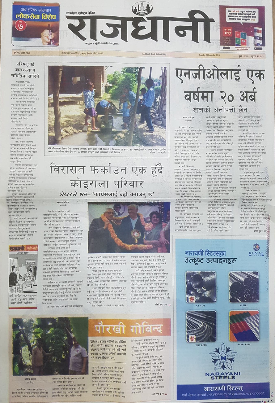 राजधानीले एनजीओको खर्चमाथि चासो देखाएको छ भने गोरखापत्रमा राजदूत सुनुवाइका लागि पत्राचार गरिएको समाचार छ ।
