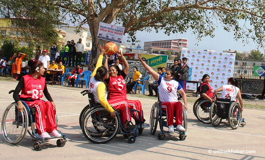 २४ फागुन, बुटवल । शारीरिक अपांगता भएका व्यक्ति ह्वीलचियरमा गुडेको देख्नु नौलो होइन । तर बुटवलमा शुक्रबार विल्कुलै नौलो दृश्य देखियो । दर्जनौं अपांगता भएका व्यक्ति ह्वीलचियरमा गुड्दै बास्केटबल खेलमा प्रतिस्पर्धा गर्दै थिए ।