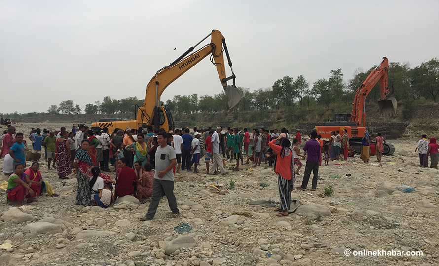 बिहीबार बिहानै सयौंको संख्यामा आएका बासिन्दाको अबरोधपछि ढुंगा गिटी ढुवानीका लागि भरिएका टिपरहरु उत्खनन् स्थलमै रोकिएका छन् ।
