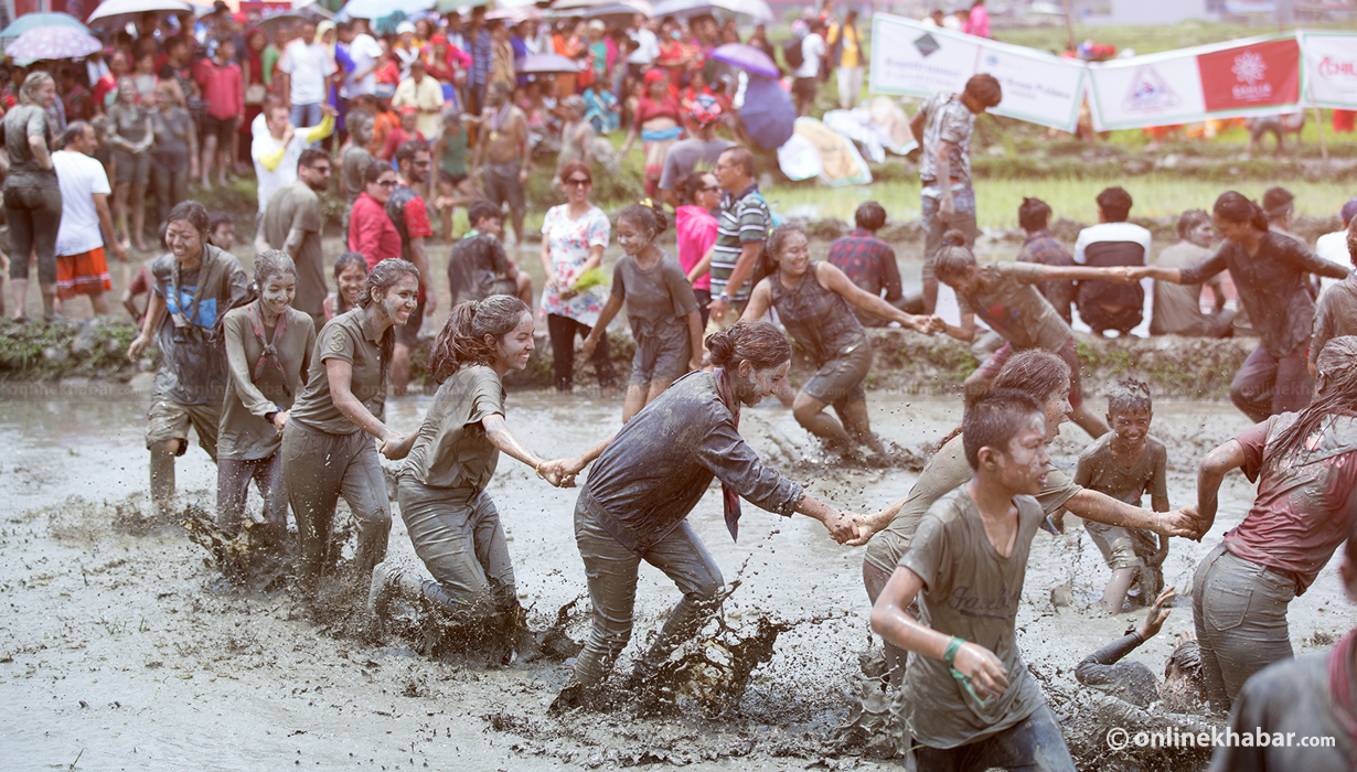 बिहान करिब ११ बजेबाट सुरु भएको महोत्सवमा विदेशी पर्यटकको उल्लेख्य उपस्थिति देखिन्थ्यो । उनीहरु कहिले हिलोमा लडीबुडी खेल्दै एक आपसमा हिलो छ्याप्थे त कहिले फुटबललाई भलिबल बनाएर खेलिरहेका थिए ।